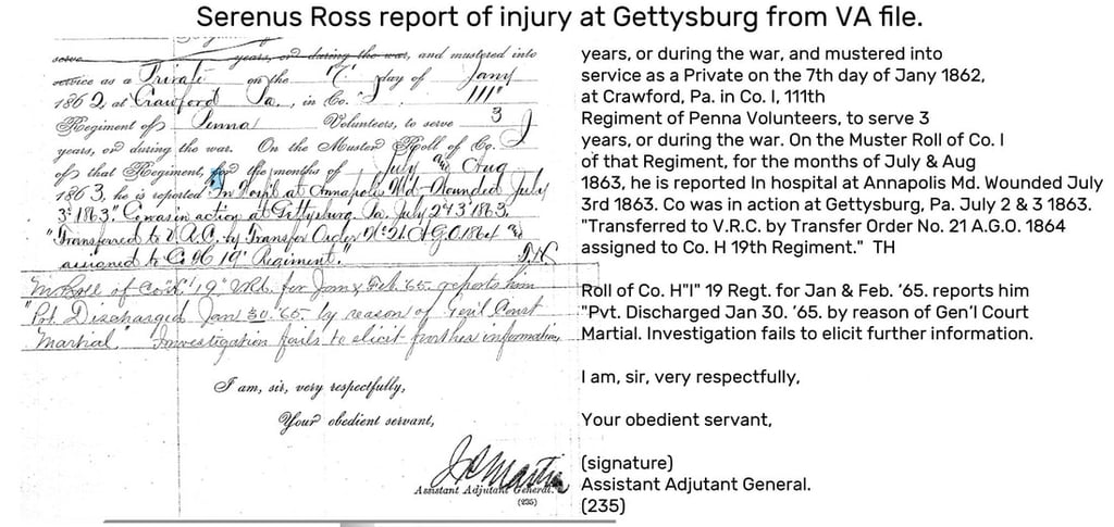 excerpts of the veterans file of Serenus Ross.your text here...